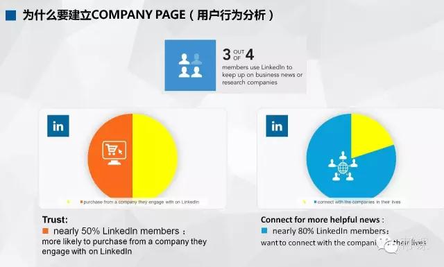 2) 一個(gè)專業(yè)的公司頁(yè)面(Company Page),能增加買(mǎi)家的信任,促進(jìn)未來(lái)的轉(zhuǎn)換(狀態(tài)更新,讓客戶時(shí)時(shí)能了解你公司的優(yōu)勢(shì),情況等)看下面的這組數(shù)據(jù):