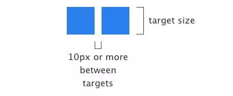 另外一個(gè)需要考慮的是就是可觸摸控件指尖的距離。如果兩個(gè)按鈕比較靠近,那么用戶(hù)在移動(dòng)端上就很容易出現(xiàn)誤觸的情況了。如果想要解決這個(gè)問(wèn)題,就需要根據(jù)實(shí)際情況重新調(diào)整尺寸和按鈕之間的距離,以適應(yīng)用戶(hù)手指交互的需求。下面是推薦的尺寸設(shè)定。